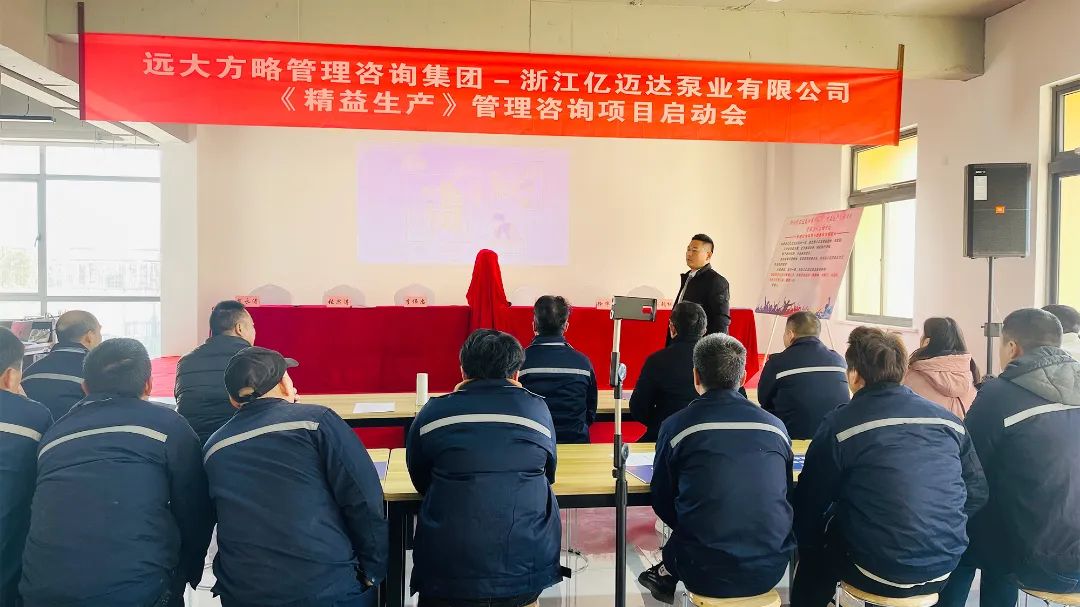持續改善,追求卓越,浙江億邁達泵業有限公司(以下簡稱“億邁達泵業”)攜手遠大方略啟動《精益管理》咨詢項目,全面推行精益管理,建立標準化、規范化的管理制度,以更少的資源投入創造出更大的價值,實現企業效益更大化。