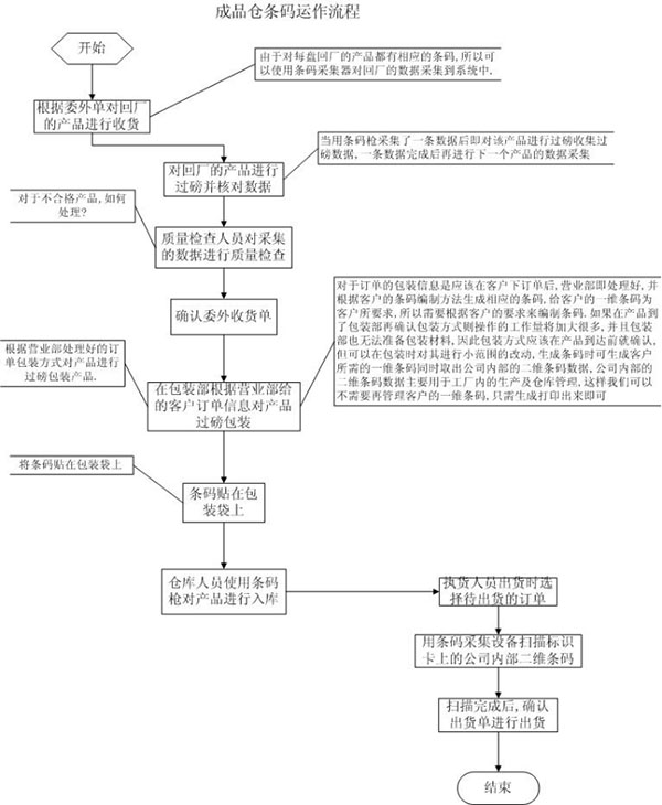 1) 選擇需要委外的生產(chǎn)單送貨至委外供貨商處加工。送貨時(shí)需打印流轉(zhuǎn)卡,并加印二維條碼(相同規(guī)格品號(hào)匯總,包括送貨單號(hào)、委外品號(hào)、顏色、數(shù)量、發(fā)出重量)。流轉(zhuǎn)卡已在打頭過(guò)磅時(shí)產(chǎn)生,重量用手寫在流轉(zhuǎn)卡上便可,整個(gè)流程是質(zhì)檢先行檢查并用個(gè)人廠牌登記啟動(dòng)系統(tǒng),再將貼有防油貼紙流轉(zhuǎn)卡在Bar Code Scanner系統(tǒng)內(nèi)輸入pass訊息(ng就不用輸入),電鍍部在用Bar Code Scanner輸入系統(tǒng)時(shí),如拿錯(cuò)質(zhì)檢判為ng的半成品時(shí),系統(tǒng)將會(huì)提出指示及不被接納,其它流程與質(zhì)檢部相若,只是時(shí)間上先后而已,以及加入過(guò)磅自動(dòng)輸入系統(tǒng).