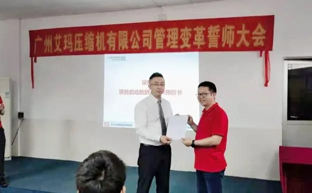 致辭后,謝總向遠大方略老師頒發了授權委托函;副總經理黃君鳳女士宣讀了廣州艾瑪組織系統管理變革小組架構、成員名單及任命書,小組成員現場簽訂了責任書。