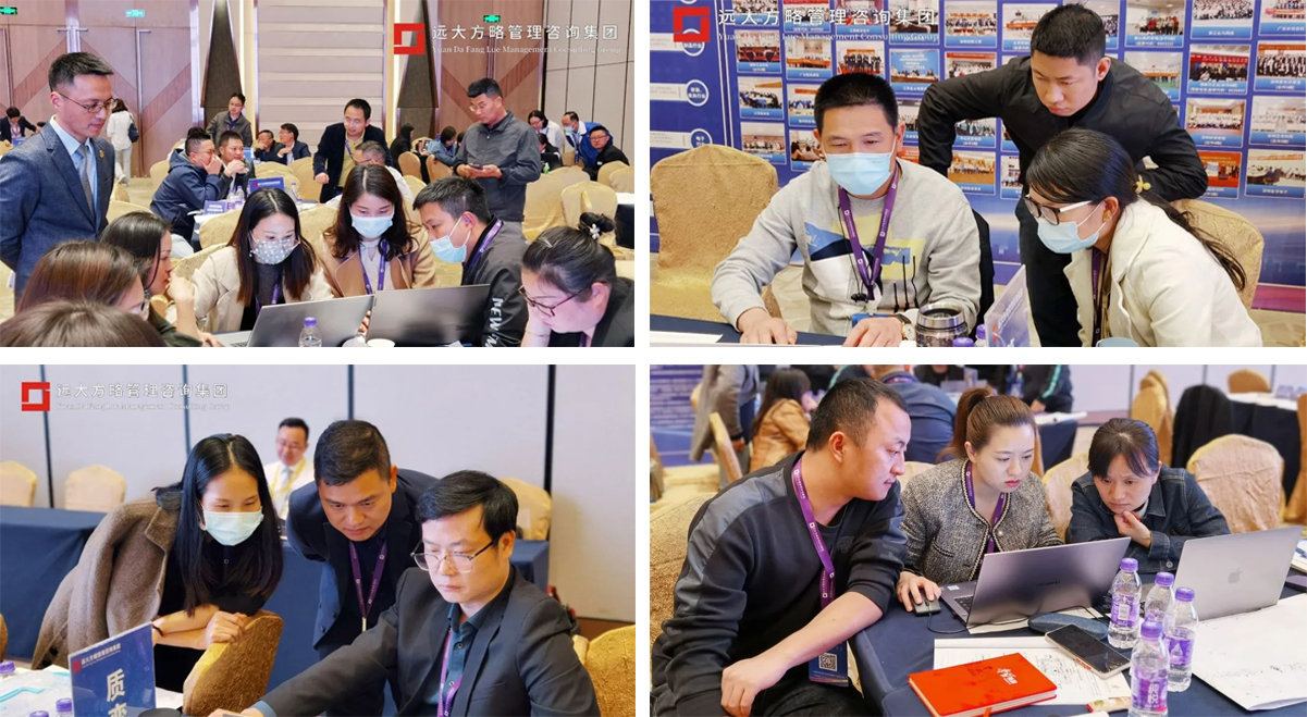 老師全程開啟巡場模式,輪流到各小組輔導學員制定適合自己企業的經營分析報告、業務報告、部門年度經營計劃書、企業戰略地圖等實用報表。還為大家提供了差距分析、波士頓矩陣(SPAN圖)、PESTEL分析、麥肯錫三層面理論、波特價值鏈分析等實用工具和使用方法。幫助現場企業家建立了貫穿戰略制定和執行全流程的企業經營思維,結合各企業實際制定了年度經營計劃書,收獲了一套戰略落地執行的系統方案。