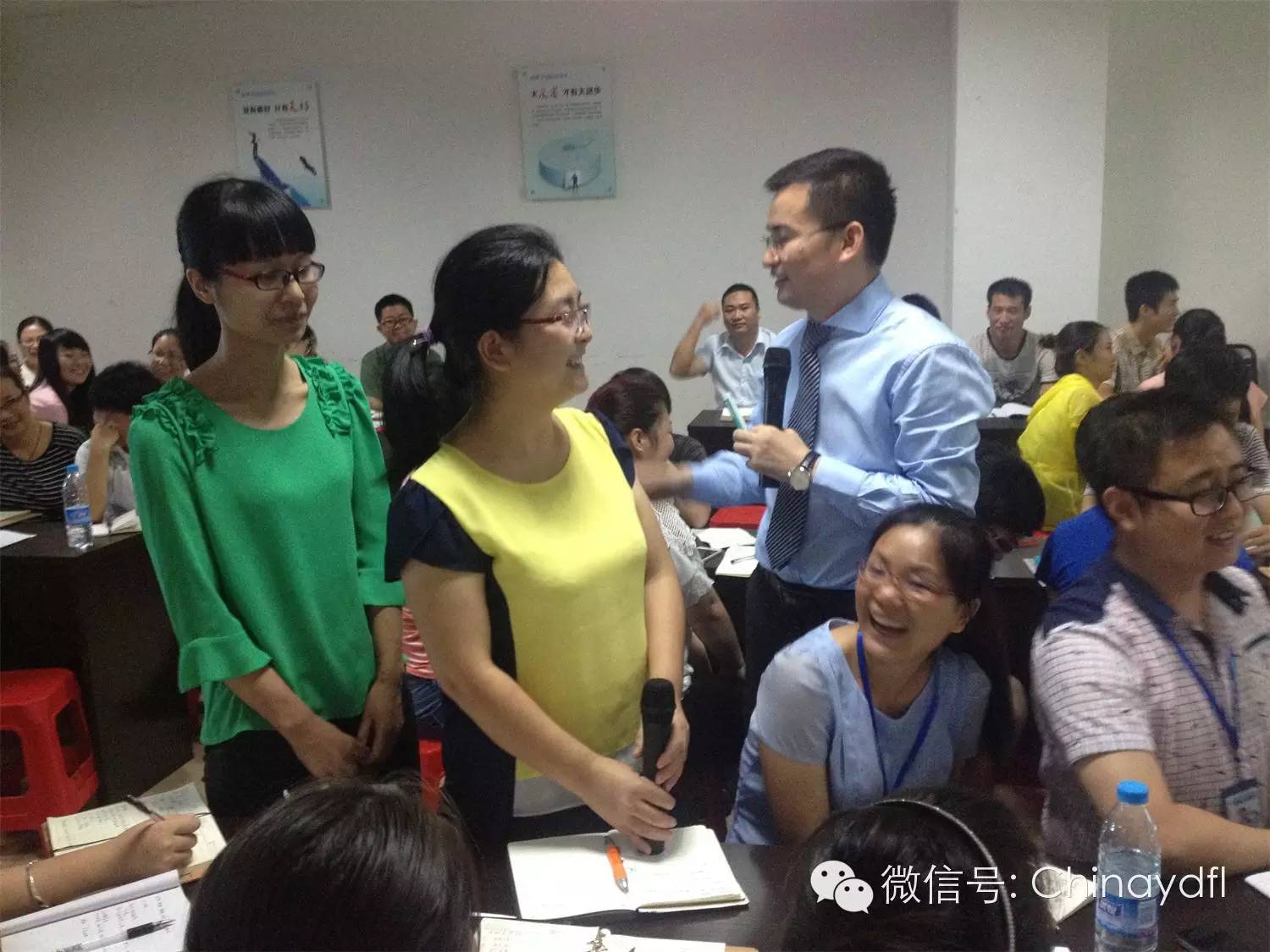 雷志軍老師與凌雪飛老師在講解管理工具的有效運用內容,并與小組成員互動