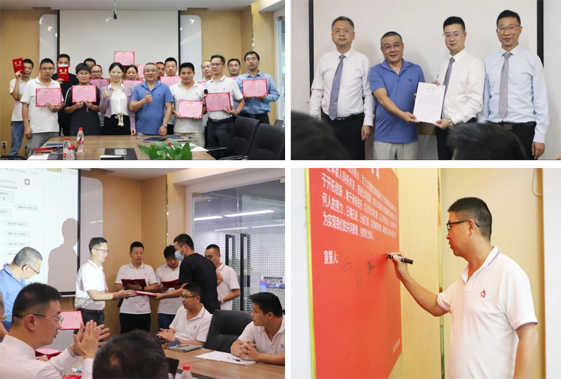 會上,公司高層為項目老師和項目小組負責人分別頒發了授權書與任命書,帶領大家集體宣誓,鼓舞大家全力投入變革,促成企業、員工、客戶的共贏。