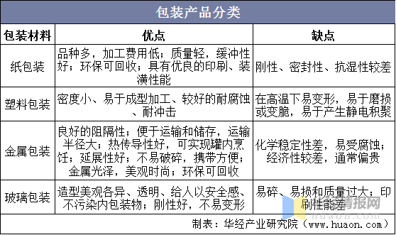 按包裝材料劃分,包裝產(chǎn)品主要分為紙包裝、塑料包裝、金屬包裝和玻璃包裝等四大類。