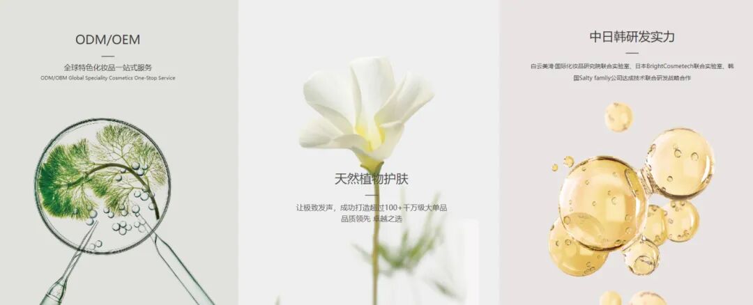 全球三大制造基地,約15萬平方米,擁有超10000款產品,遠銷全球5大洲82個國家,各項化妝品生產資質齊全,公司始終致力于打造世界領先化妝品ODM企業。