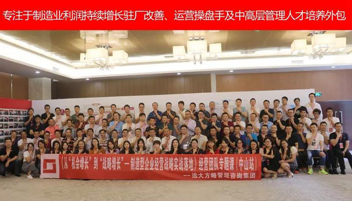 2018年6月29日~6月30日由遠大方略專業(yè)師資團隊打造的《從“機會增長”到“戰(zhàn)略增長” ——制造型企業(yè)經營戰(zhàn)略實戰(zhàn)落地》課程在中山怡景假日酒店舉行,現場聚集了100+制造業(yè)各大企業(yè)家/CEO,企業(yè)管理者,一起復盤剖析企業(yè)的戰(zhàn)略部署。